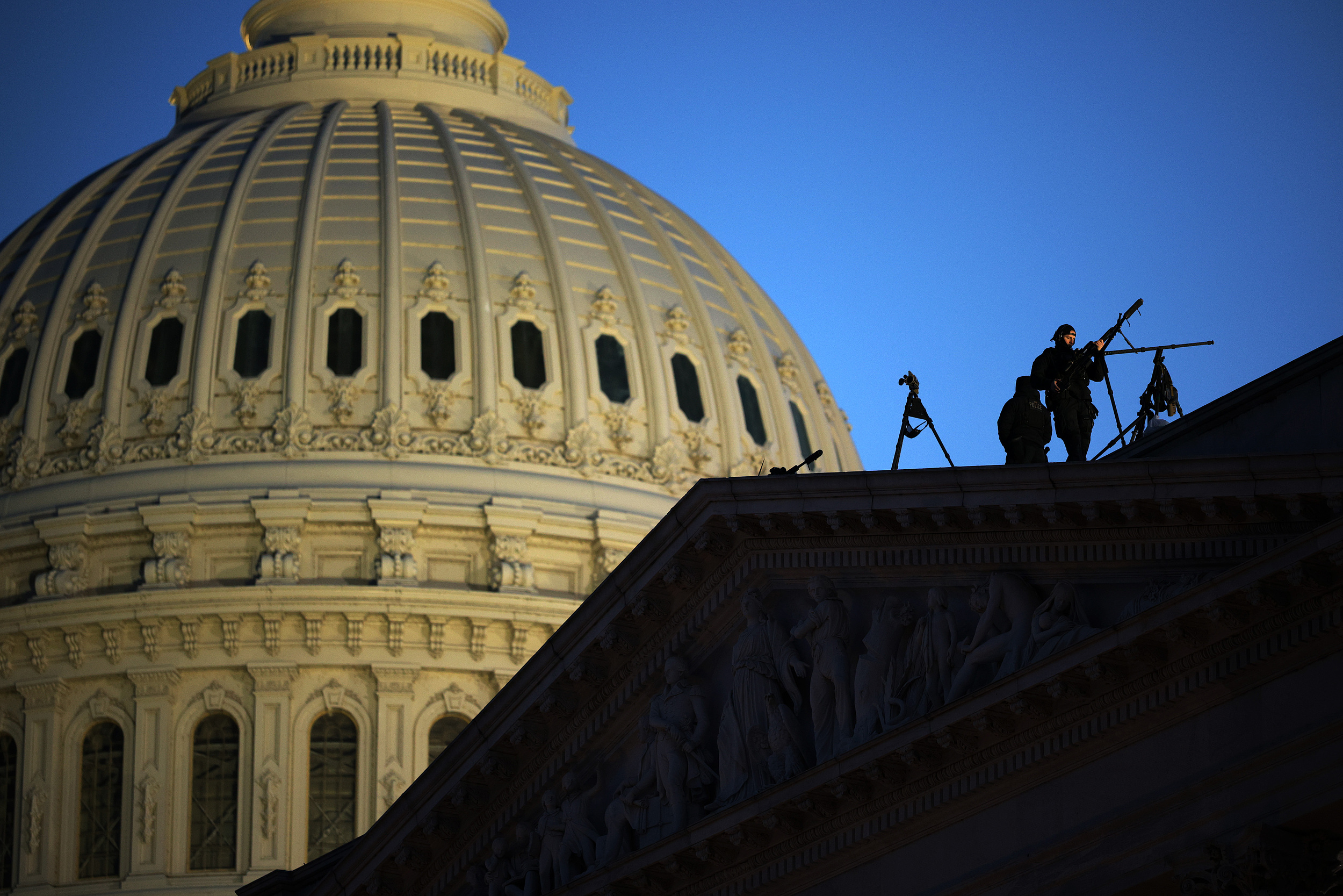 2月24日,狙击手在美国国会大厦上方部署位置 图源:视觉中国